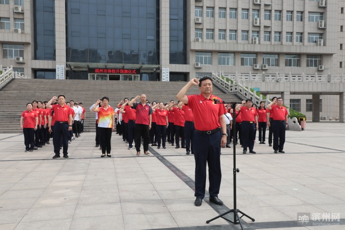 庆祝中国共产党成立100周年大会7月1日上午8时在北京天安门广场隆重举行。为了铭记这一激动人心的重要历史时刻,滨州市体育局、市体校组织全体干部职工观看了现场直播。直播观看结束后举行了升国旗、重温入党誓词仪式。